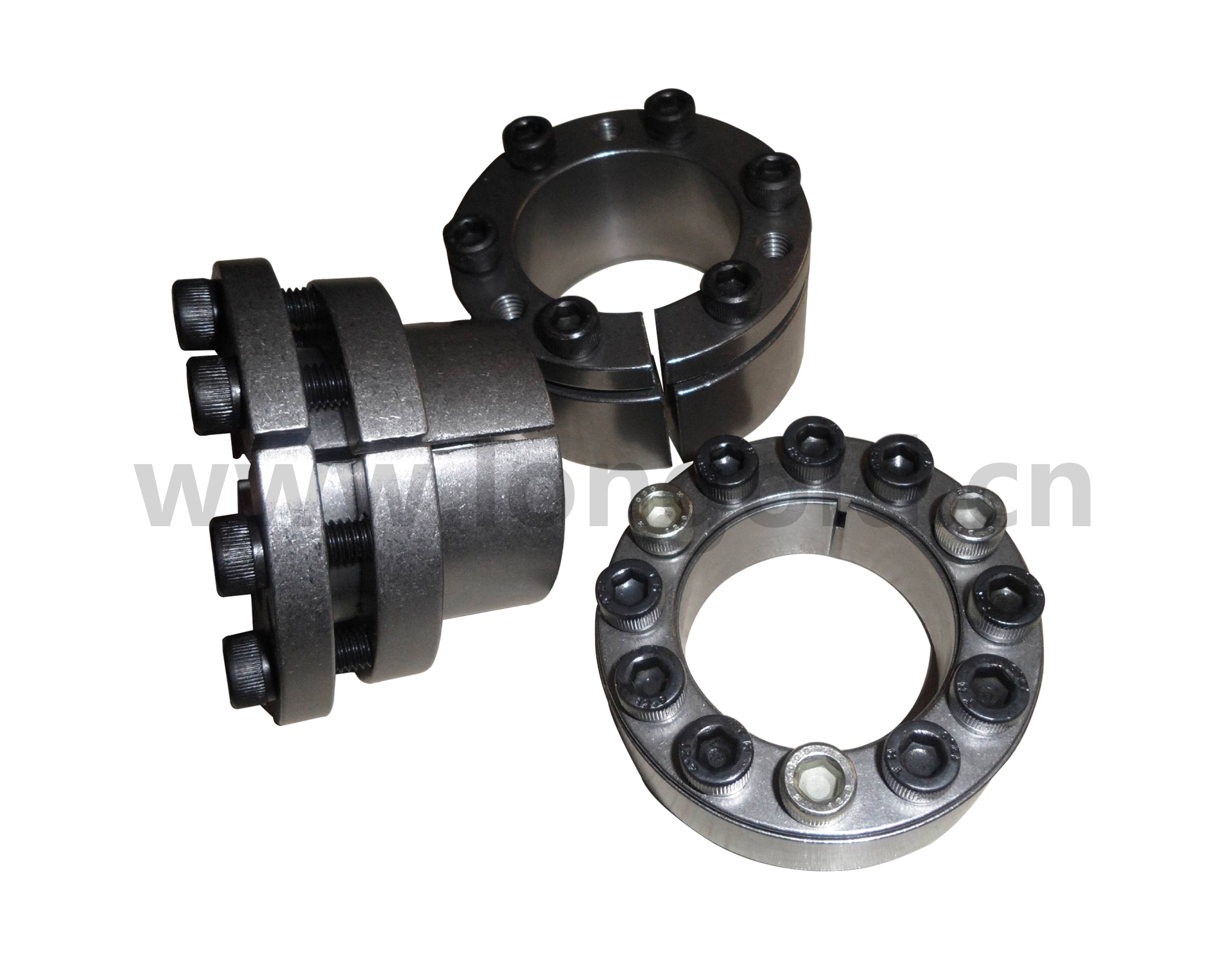 ◎ 它使用時(shí)通過(guò)高強(qiáng)度螺栓的作用,使內(nèi)環(huán)與軸之間,外環(huán)與輪轂之間產(chǎn)生巨大抱緊力。