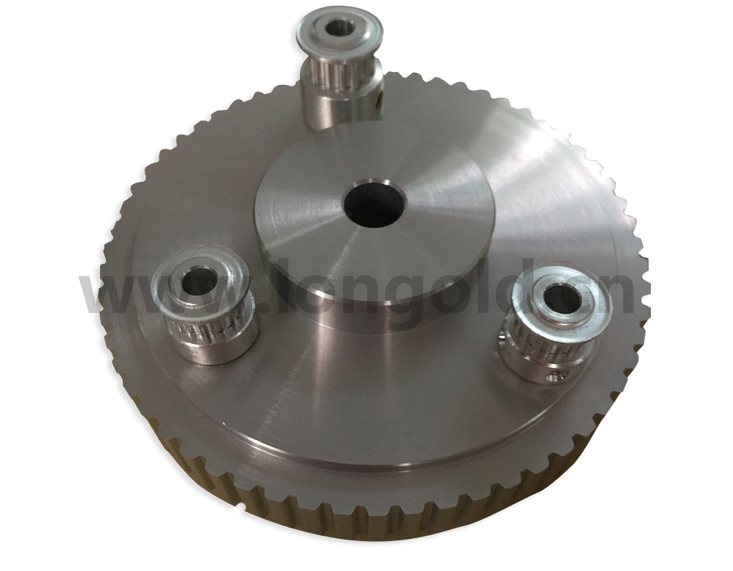 同步帶輪一般由鋼,鋁合金,鑄鐵,黃銅,等材料制造。內(nèi)孔有圓孔,D形孔,錐形孔等形式。表面處理有本色氧化,發(fā)黑,鍍鋅,鍍彩鋅,高頻淬火等處理。精度等級依客戶要求而定。
