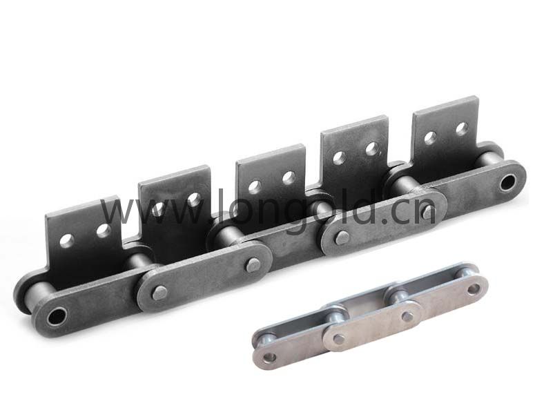 采用不銹鋼材質(zhì)的耐環(huán)境雙倍節(jié)距鏈條。適合于水中、酸性、堿性或高溫低溫(-20℃~400℃)等特殊環(huán)境下的使用。鏈條的單側(cè)帶有直立板附件,附板上帶有1個(gè)或者2個(gè)螺孔,附件表示為:SA1和SA2。